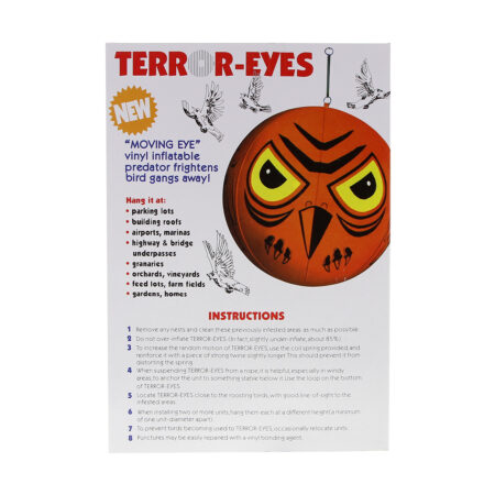 $63.59Original price was: $63.59.$45.41Current price is: $45.41. AUDSKU: Terror Eyes Categories: Marine, Residential, Visual DecoysThe Visual Scare Scary Eye Balloon Bird Deterrent is designed to frighten birds away using a combination of size, bright colours, reflective and motion.