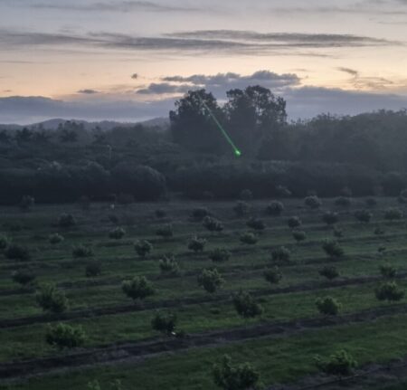 Best results are achieved by pointing the laser to the foliage, so the birds perceive the laser light as danger and fly away.