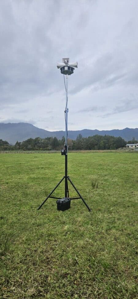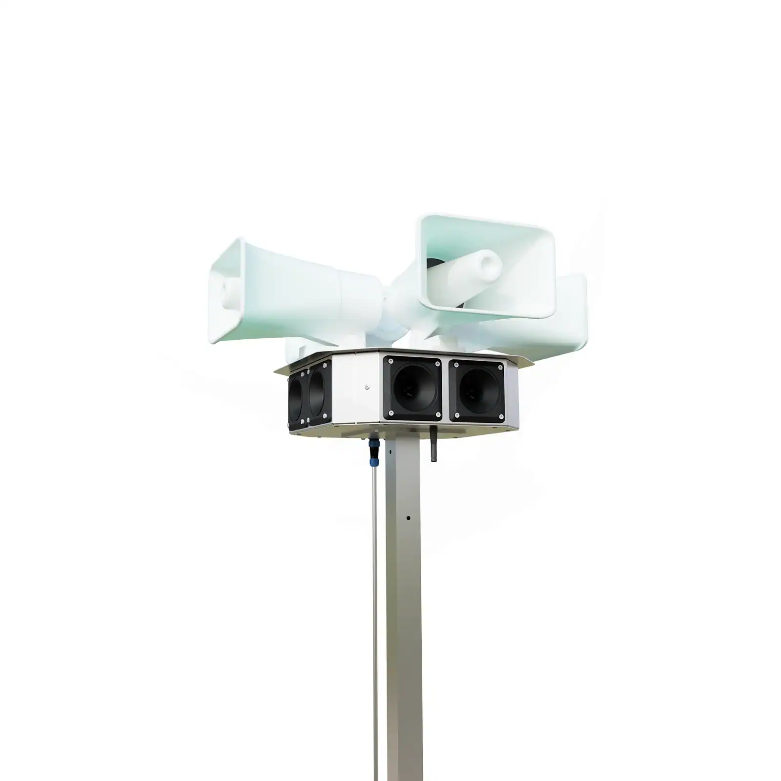 SKU: Birdzout 12S Categories: Agriculture, CommercialThe Bird Control Australia Birdzout 12S bioacoustics unit protects areas of up to 10 hectares (24 acres). The all in one, eight speaker enclosure plus 4 X horn speakers is great for use in larger multi block areas. The horn speakers bringing a deeper sound.